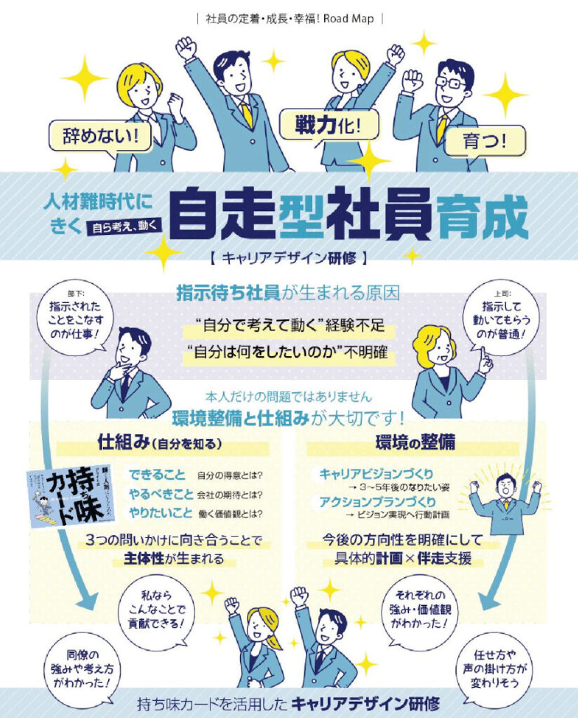 自走型社員育成 キャリデザイン研修にご興味があれば、企業向けの研修も行っておりますので、お気軽にお問い合わせください。